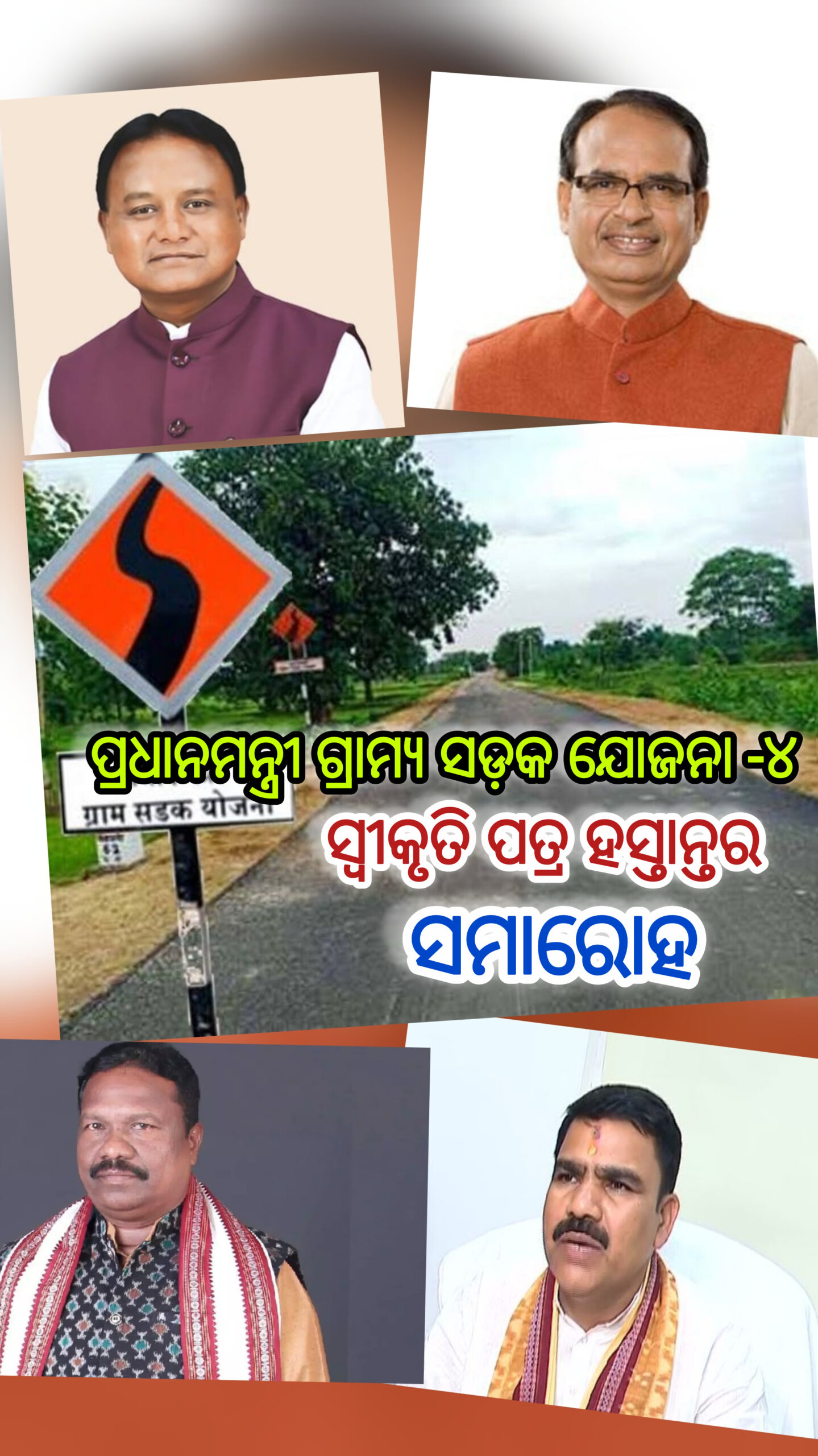 ମେ ପହିଲାରେ ପ୍ରଧାନମନ୍ତ୍ରୀ ଗ୍ରାମ ସଡ଼କ ଯୋଜନା-୪ର ସ୍ୱୀକୃତିପତ୍ର ହସ୍ତାନ୍ତର ସମାରୋହ 🔻ଯୋଗଦେବେ ମୁଖ୍ୟମନ୍ତ୍ରୀ , କେନ୍ଦ୍ରୀୟ ଗ୍ରାମୀଣ ବିକାଶ ମନ୍ତ୍ରୀ, ରାଜ୍ୟ ଗ୍ରାମୀଣ ଉନ୍ନୟନ, ପଂଚାୟତରାଜ ଓ ପାନୀୟ ଜଳ ବିଭାଗ ମନ୍ତ୍ରୀ ଏବଂ ଅନୁସୂଚିତ ଜନଜାତି ଓ ଅନୁସୂଚିତ ଜାତି କଲ୍ୟାଣ ମନ୍ତ୍ରୀ🔻