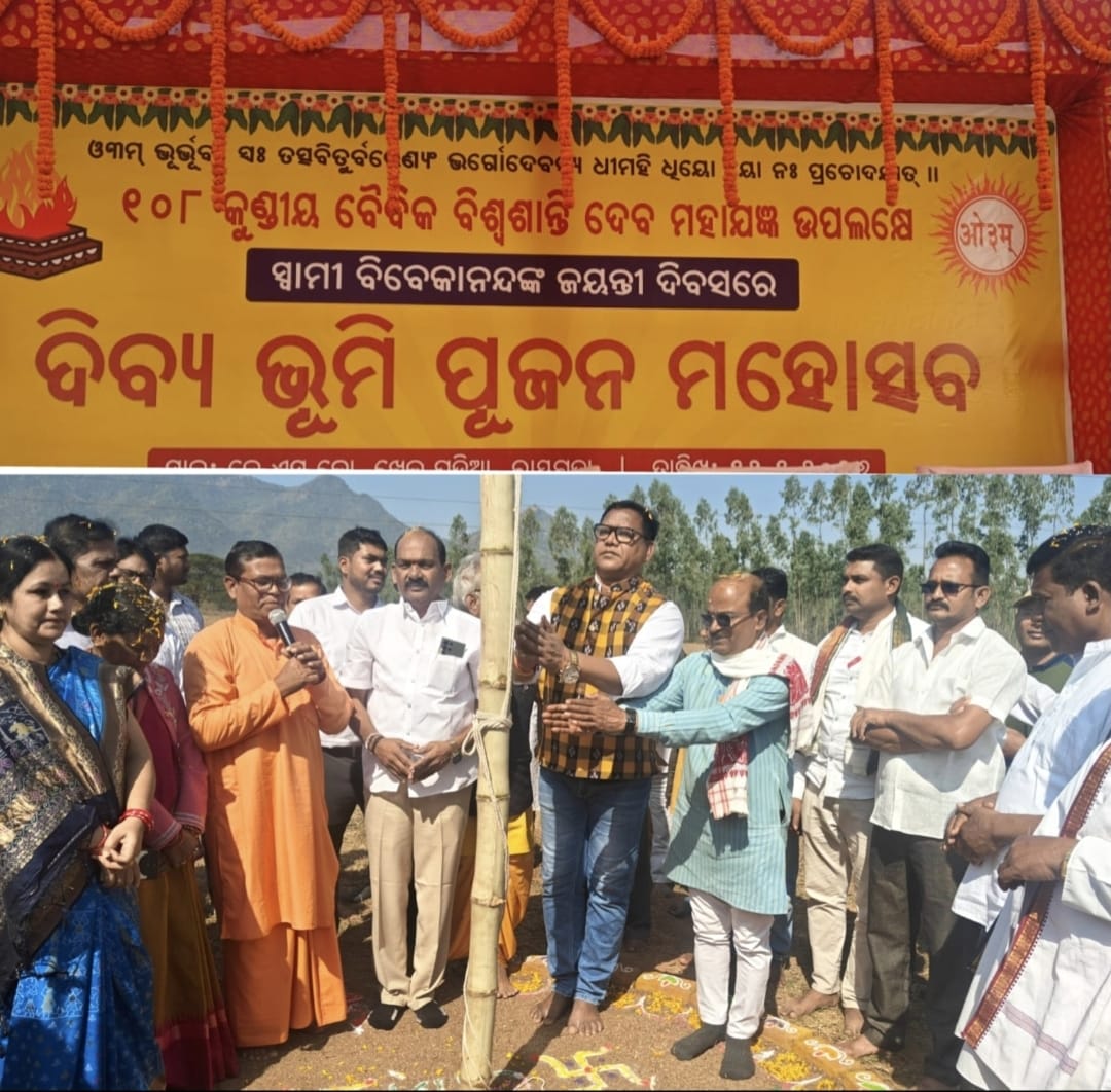 ରାୟଗଡା ସହର ର ଜେସକୋ ପଡିଆରେ ଆସନ୍ତା ଜାନୁୟାରୀ ମାସ 31 ତାରିଖ ଓ ଫେବୃୟାରୀ ମାସ 1 ଓ 2 ତାରିଖ ତିନିଦିନ ଧରି ୧୦୮ କୁଣ୍ଡିୟ ବୈଦିକ ବିଶ୍ୱ ଶାନ୍ତି ଦେବ ମହାଯଜ୍ଞ ଅନୁଷ୍ଠିତ ହେବ। ସ୍ବାମୀ ବିବେକାନନ୍ଦ ଜୟନ୍ତୀ ଅବସରରେ, 12 ତାରିଖ ଦିନ ଭୂମି ପୂଜନ ଓ ଧ୍ୱଜାରୋହଣ କାର୍ଯ୍ୟକ୍ରମ JESCO ଗ୍ରାଉଣ୍ଡରେ ଅନୁଷ୍ଠିତ ହୋଇଯାଇଛି। ପୂଜା ଓ ହବନରେ ହରିପୁର ଗୁରୁକୂଳ ଆଶ୍ରମର ପୂଜ୍ୟ ପୁରୁଷୋତ୍ତମ ମୁନି ଓ ସ୍ୱାମୀ ଚୈତନ୍ୟ ରାମ ମହାରାଜଙ୍କ ନେତୃତ୍ୱରେ ଭକ୍ତି ଭାବ ସହିତ ଅନୁଷ୍ଠିତ ହୋଇଥିଲା।ଏହି କାର୍ଯ୍ୟକ୍ରମରେ ମୁଖ୍ୟ ଅତିଥି ଭାବେ ରାୟଗଡା ବିଧାୟକ ଆପୂଲୁ ସ୍ୱାମୀ କାଡ୍ରକା,ସମ୍ମାନୀତ ଅତିଥିଭାବେ ରାଷ୍ଟ୍ରୀୟ ସ୍ୱୟଂ ସେବକ ସଂଘର ପୂର୍ବପ୍ରାନ୍ତ ସେବା ପ୍ରମୁଖ ଦୀପକ ରାଉତ, ଆୟୋଜକ ବିଜେପି ନେତା ତଥା ଟ୍ରକ ମାଲିକ ସଂଘ ସଭାପତି ୟେଲ୍ଲା ୱେଙ୍କଟେଶ୍ୱର ରାଓ, ମିଟସ ଗ୍ରୁପର ଅଧ୍ୟକ୍ଷ ବାଳକୃଷ୍ଣ ପଣ୍ଡା,ଓଡିଶା ଆଦିବାସୀ ମଞ୍ଚର ଆବାହିକା ଶ୍ରୀମତୀ ବିଦୁଲତା ହୁଇକା, ରାୟଗଡା ପୌରପରିଷଦର ଉପ ନଗର ପାଳ ଶ୍ରୀମତୀ ଶୁଭ୍ରା ପଣ୍ଡା ପ୍ରମୁଖ ଅତିଥି ଭାବେ ଯୋଗଦେଇଥିଲେ।